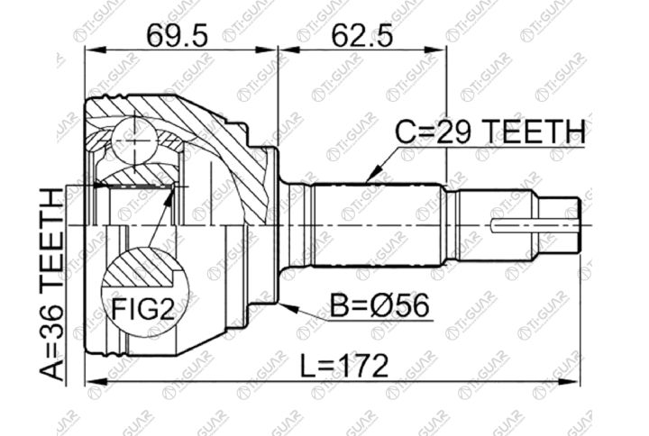 ШРУС наружный /правый /левый /TI-GUAR для Nissan Murano 2004-2007 PZ50 3.5L VQ35DE 2WD; 36*56*29; TG-7475; (NI-075) NI075 39100CA000 0210075