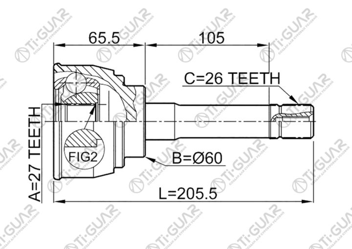 ШРУС наружный /задний правый /левый /TI-GUAR для Toyota TownAce 1985- TY 2/3C 4WD; 27*60*26; TG-9559; (43430-28011 TY-59 TO059) 4346029055 4343028010